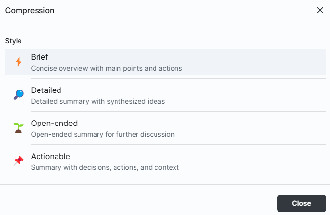 | Chat Compression | Summarize long chats into new, coherent sessions. |