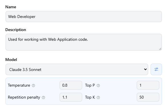 Creating task-based assistants is straightforward, with options for assistant internet access enabling Assistants that can answer from specific knowledge bases. Model parameters such as Temperature and Repetition Penalty can be tuned per-assistant, allowing optimization for creative vs. analytical tasks. For now, there are some aspects of this functionality that require manually updating the database (Featured Assistants, Admin User), but this is relatively straightforward.