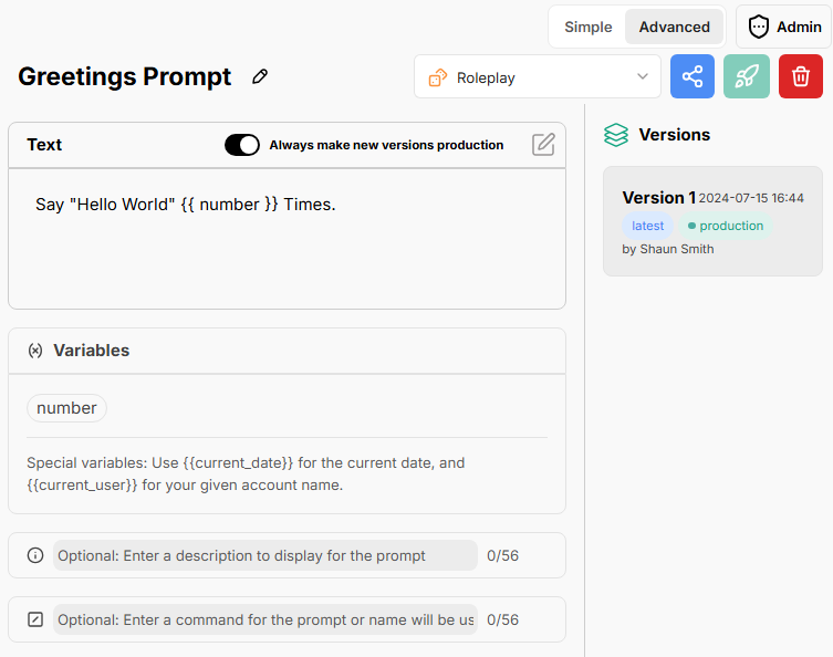 The Prompt Library feature is wonderful. It allows creating and sharing standard prompt templates. When customised with a variable, it requests User enter the necessary values and submits the prompt. This is a simple, flexible way to encourage re-use and set up repeatable workflows. LibreChat Custom Prompt