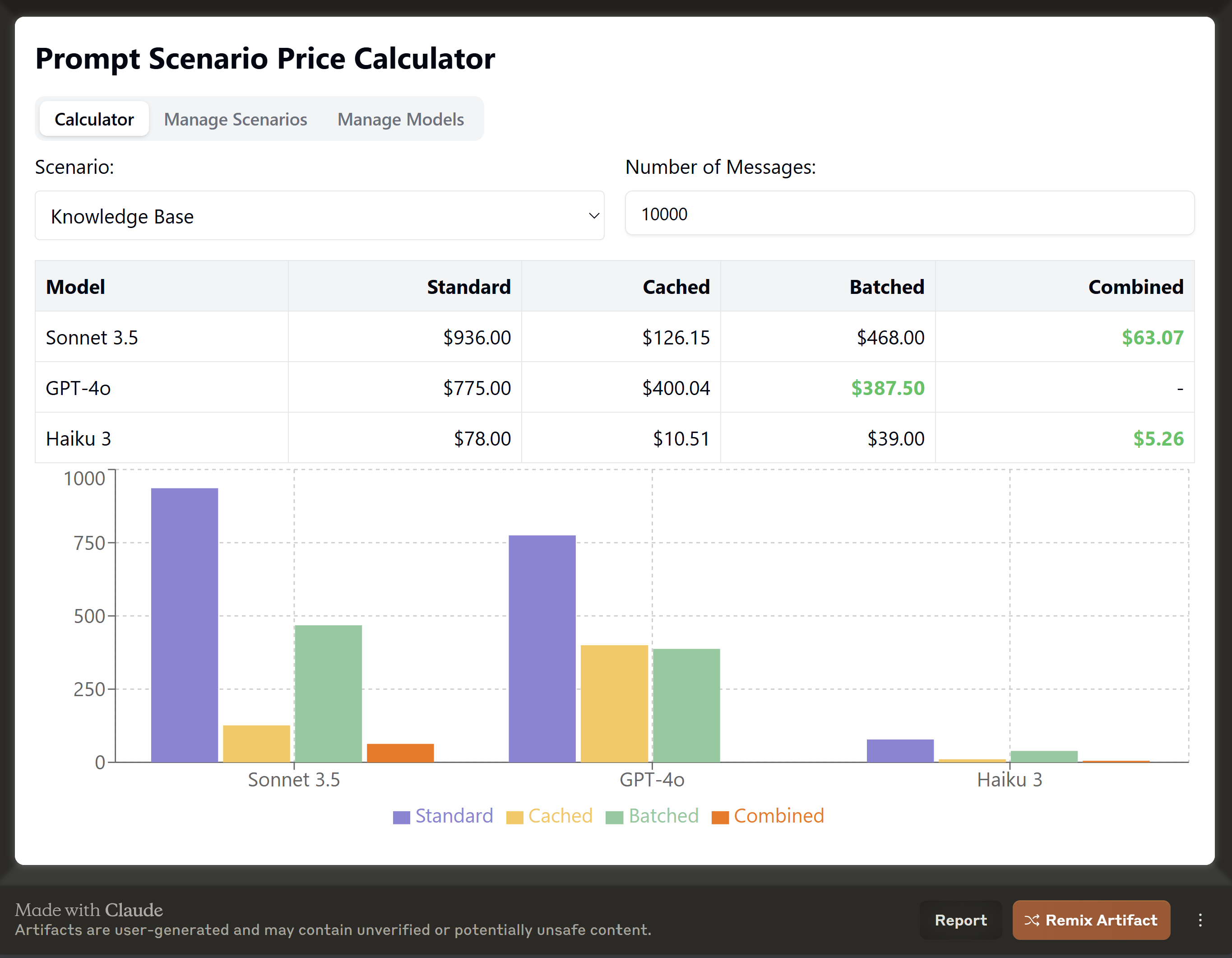 min/max prices.The final version instructs the user to open the Model/Scenario editor if the Artifact has not been set up, and includes a Batch Price Sensitivity calculator to show the effect of different Cache Hit rates.