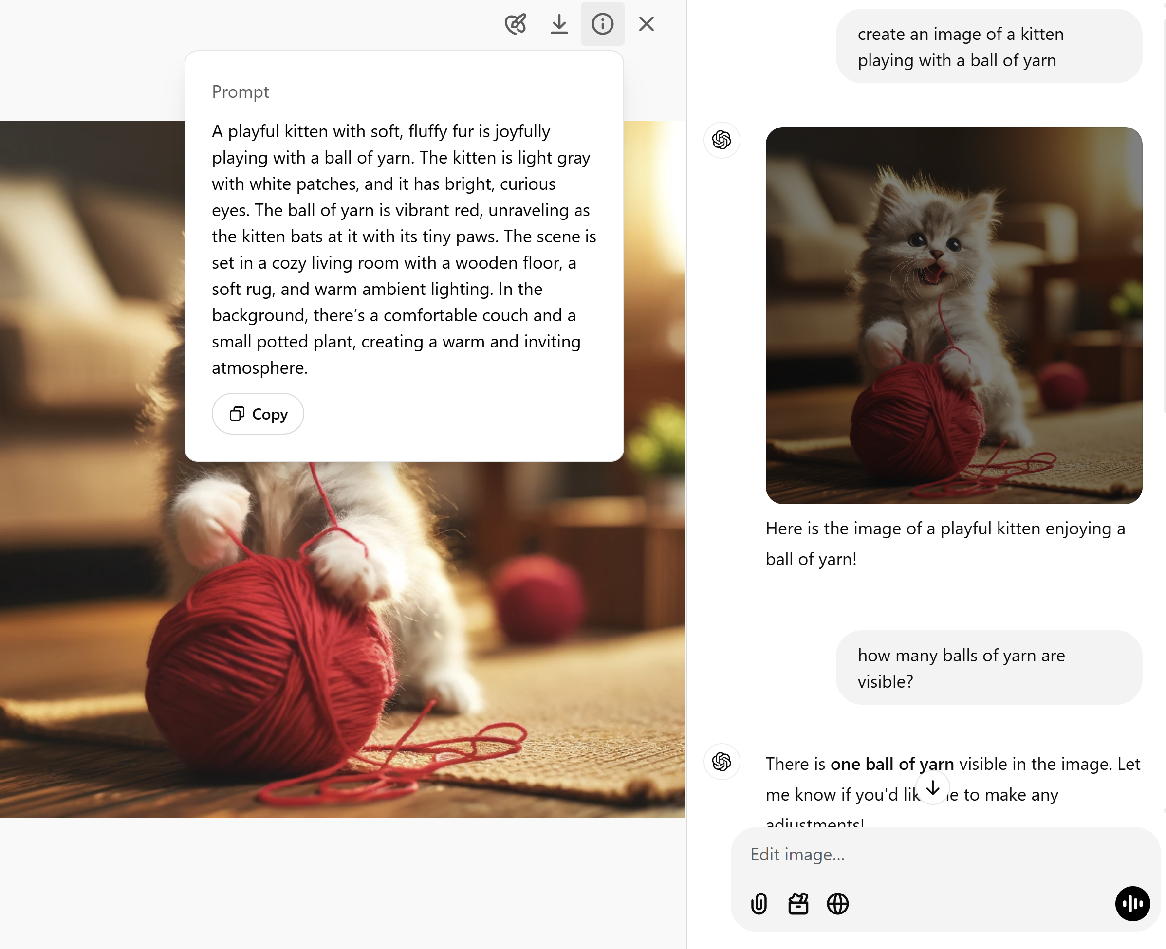 ChatGPT Image Generation - The model incorrectly guesses the balls of yarn unless the image is uploaded by the User.