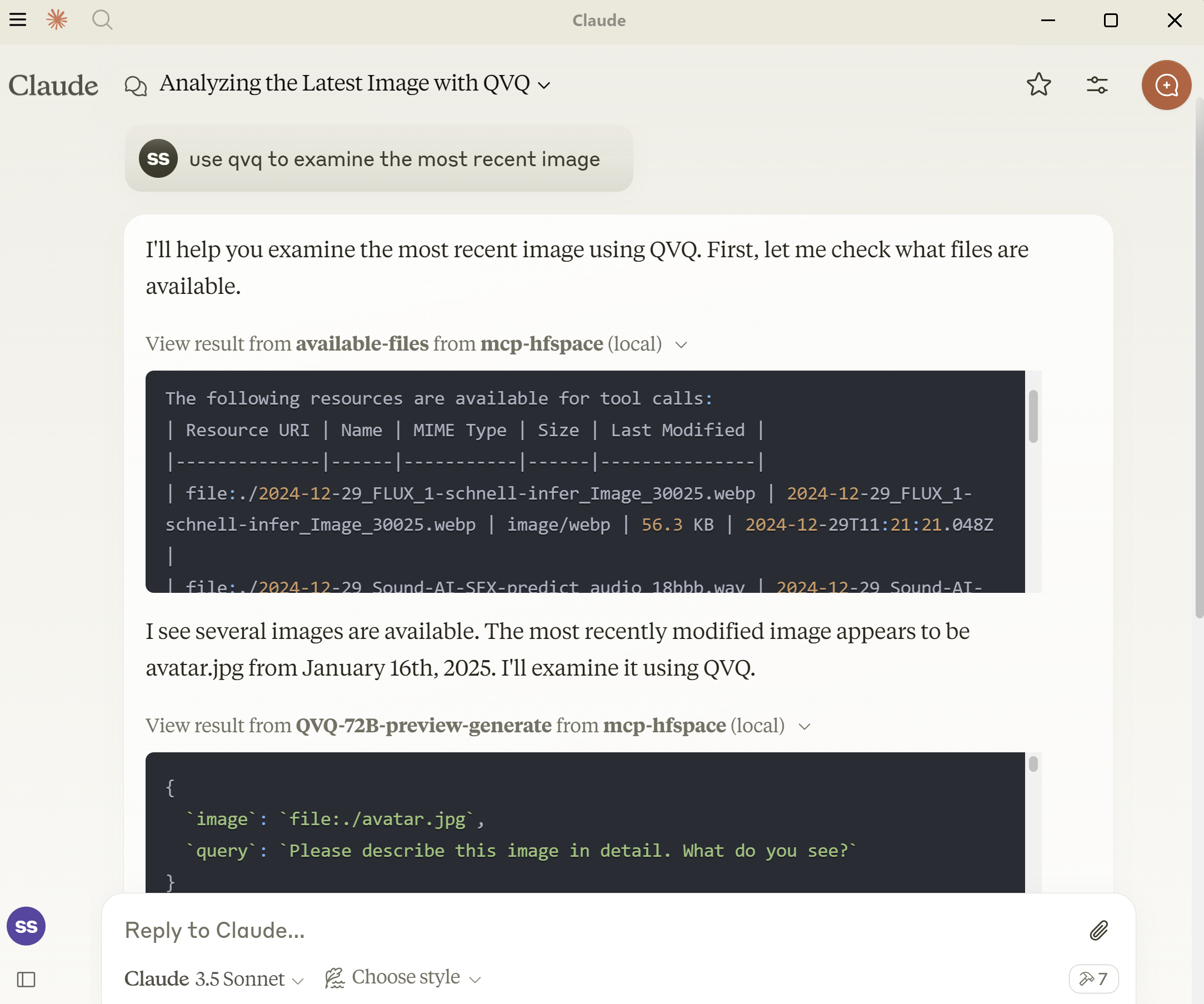 Claude Desktop responding to a prompt for 'the most recent image'