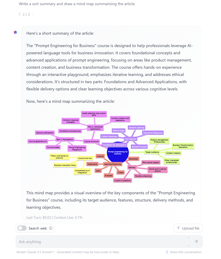 | Analyze | Evaluate AI responses and identify strategies to refine your interaction for better outcomes. | Adapt prompting techniques to specific business challenges in areas such as product development, content creation, and organizational change. |